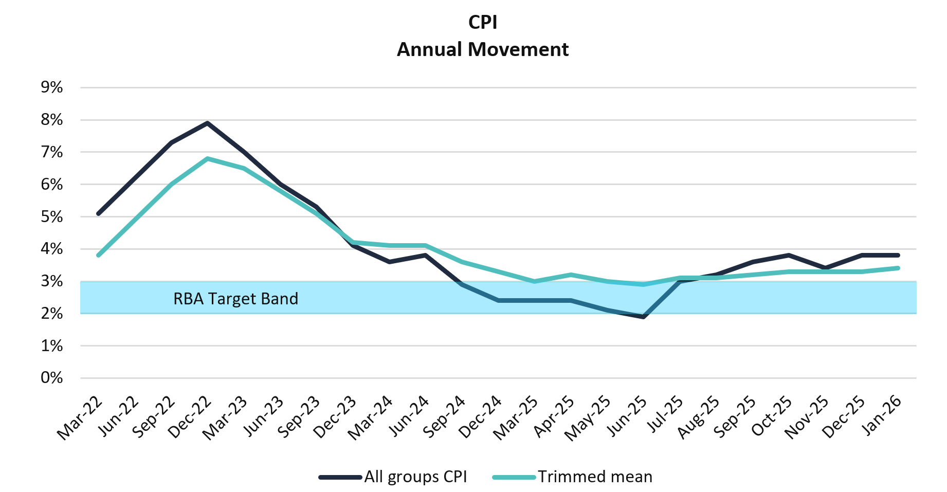 Source: Australian Bureau of Statistics, Consumer Price Index, Australia, January 2026.